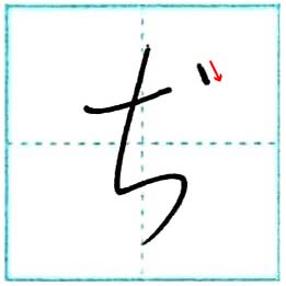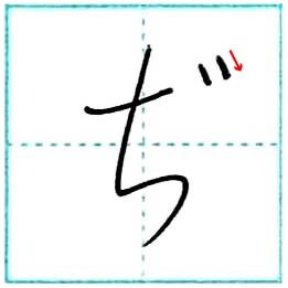 さらに、ちの右上(みぎうえ)に「゛」をつけると、ぢになります。