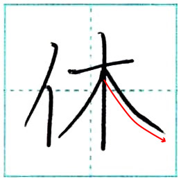 少し崩してみよう 行書 休[kyuu] Kanji semi-cursive